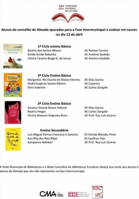 Divulgados os resultados das provas da fase municipal do concurso Nacional de Leitura (CNL), foi com muito orgulho que constatamos que o Luís Sanches (11º1) foi um dos vencedores na categoria do Ensino Secundário. Muitos Parabéns!!!!