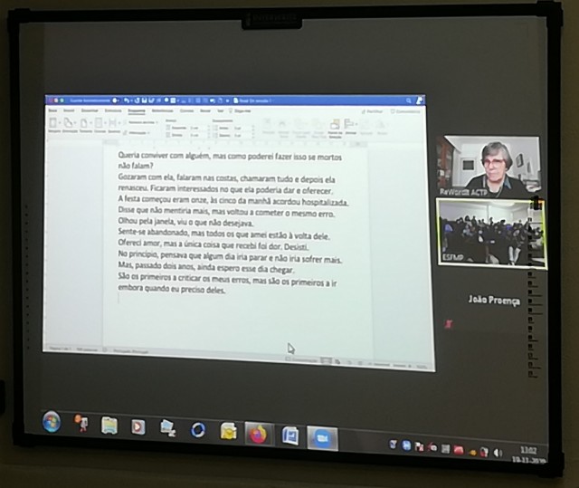 Desta vez, a professora de Português, Sónia Magalhães, e a sua turma 10º8 tiveram um encontro virtual com a escritora Margarida Fonseca Santos. Mesmo a distância, as interações foram profícuas entusiasmando autora, alunos e professora.