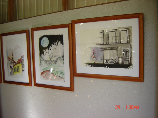 Está patente no corredor da Biblioteca Escolar uma exposição de desenhos do 12º7, produzidos a partir do estudo da obra dramática Felizmente há luar, de Sttau Monteiro.