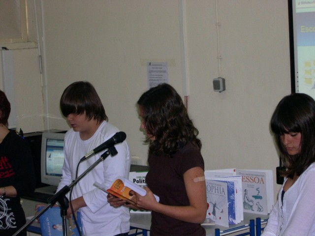 Sem terem combinado que livros apresentariam uns aos outros, tanto a Catarina Pereira (7ºA da Escola Secundária Monte de Caparica) como o André Oliveira e Costa (7º6 da nossa escola) escolheram títulos das misteriosas aventuras de Harry Potter para motivar a plateia para a leitura.