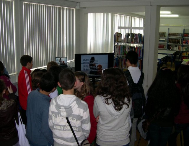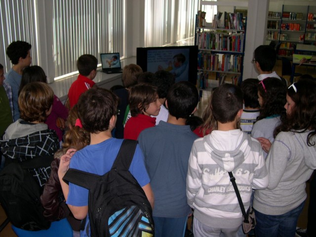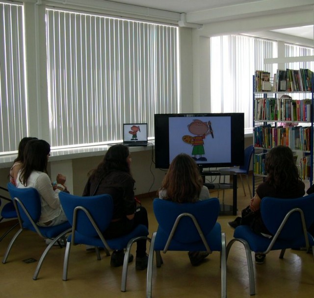 O Encontro Filosofia para Crianças...e outras leituras integrou o visionamento, na Biblioteca Escolar, de dois trabalhos realizados no passado ano lectivo por turmas do 7º ano sobre o conto "O menino que queria ser feliz", de José Jorge Letria.